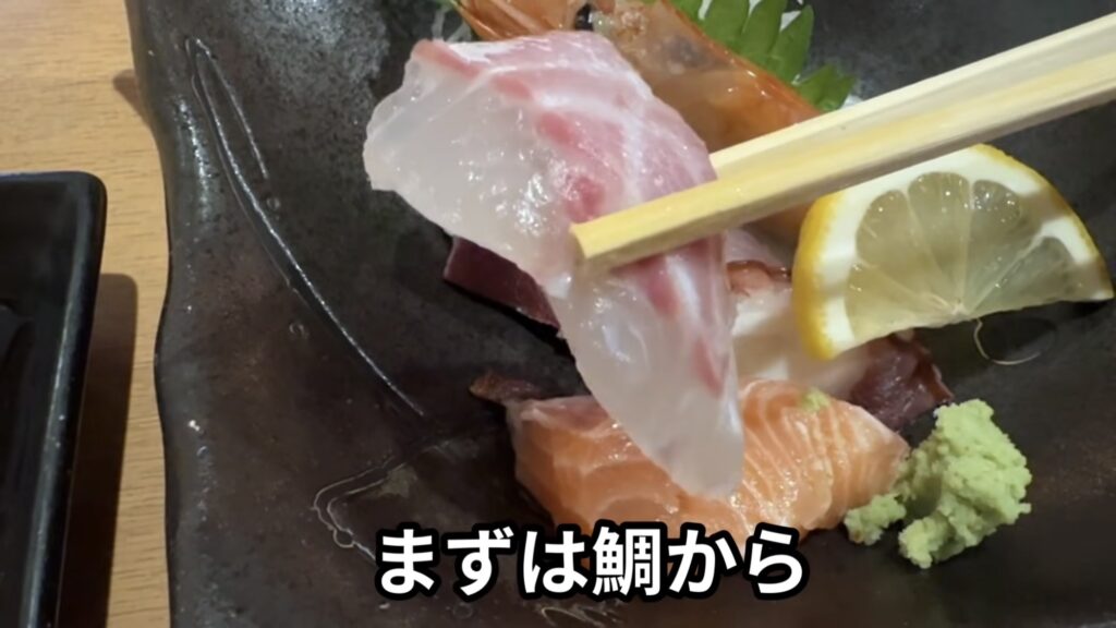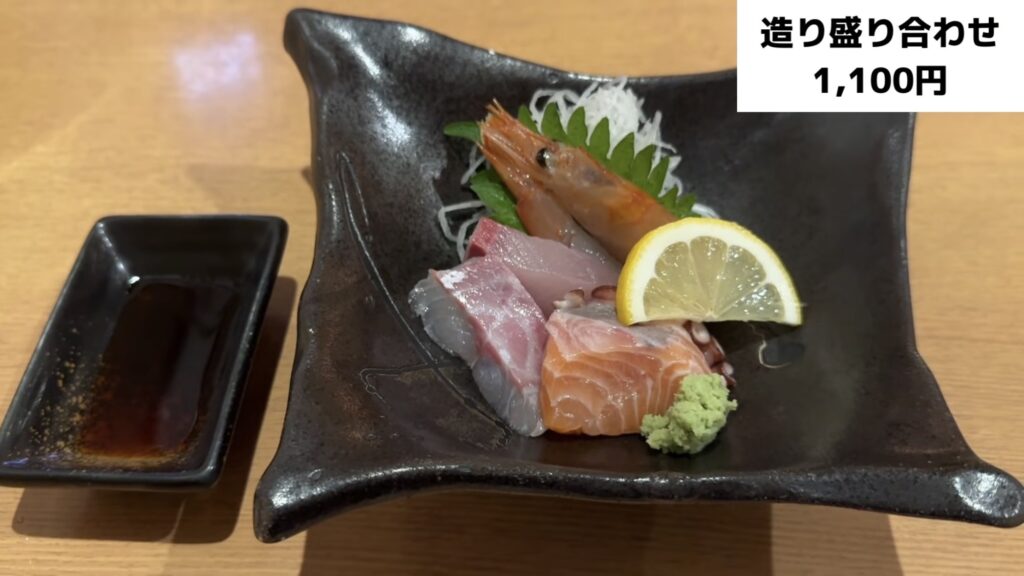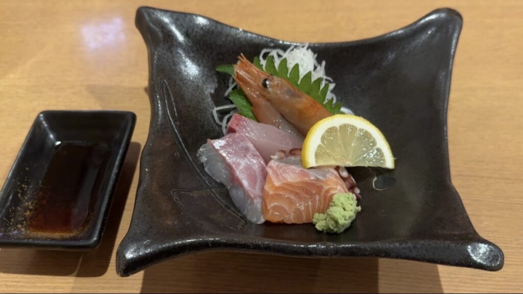 黒い器に美しく盛り付けられたお刺身は、見た目もとても上品。