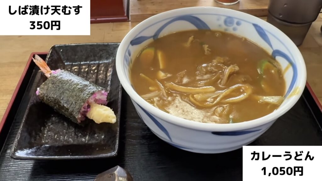 🍜 カレーうどんとしば漬け天むすを注文