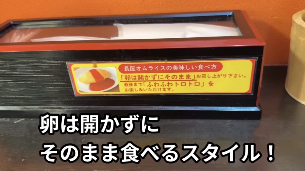 今回はシンプルなプレーンオムライスを注文しましたが、他にも、チキンオムライスなど種類も豊富。