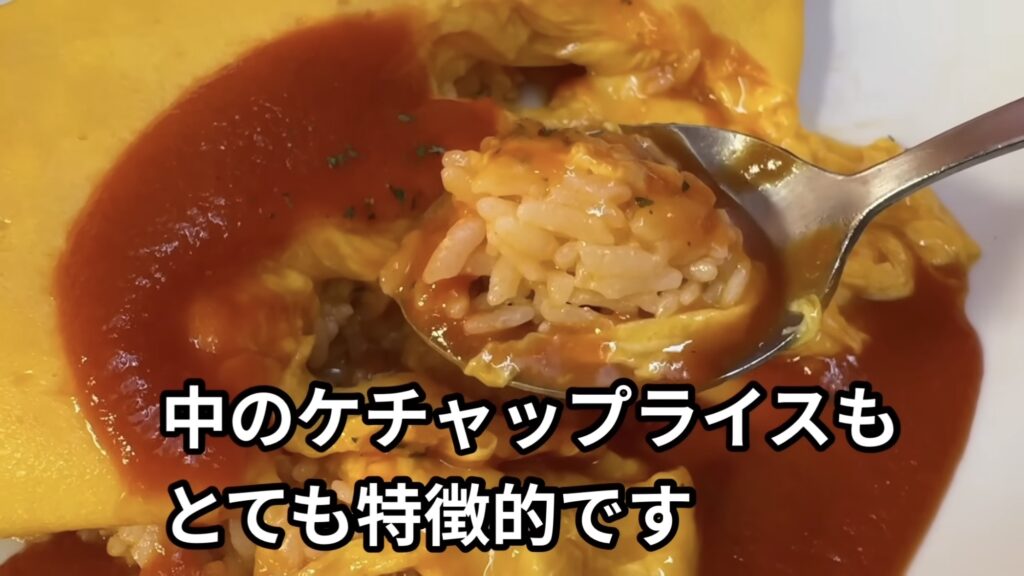 ケチャップの甘さが前に出るタイプではなく、トマトの自然な酸味と旨みがふんわり広がります。