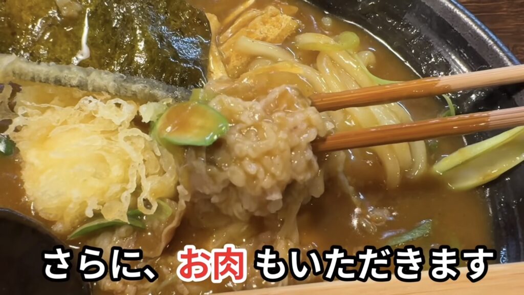 さらに甘辛く味付けされたお肉は、カレー出汁との相性抜群。