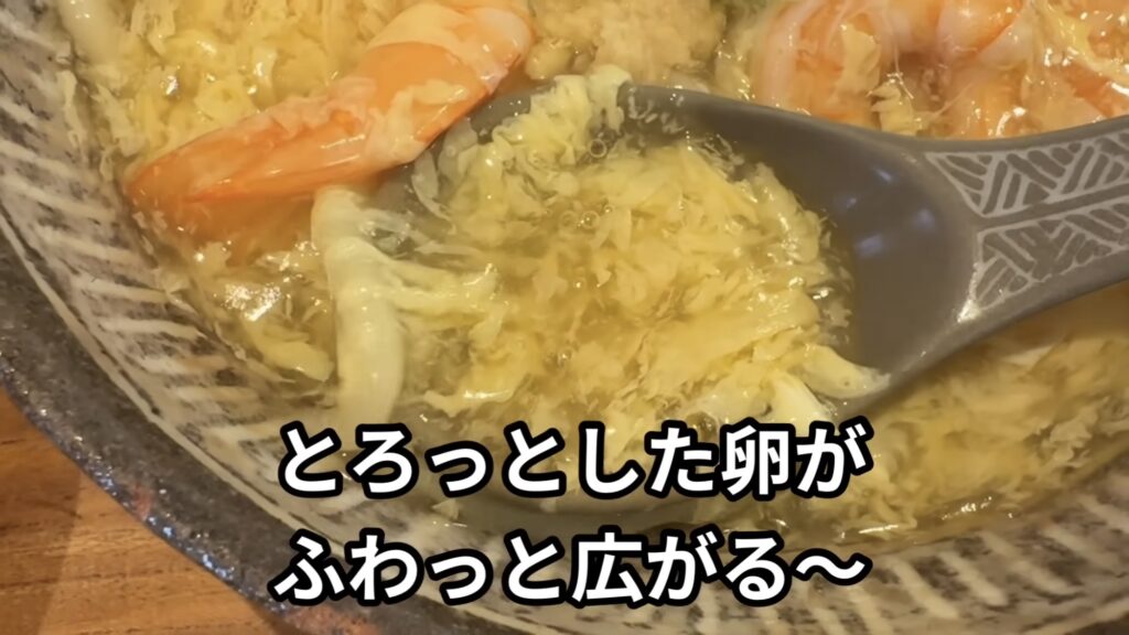 レンゲですくうと、とろっとした卵がふわっと広がります。