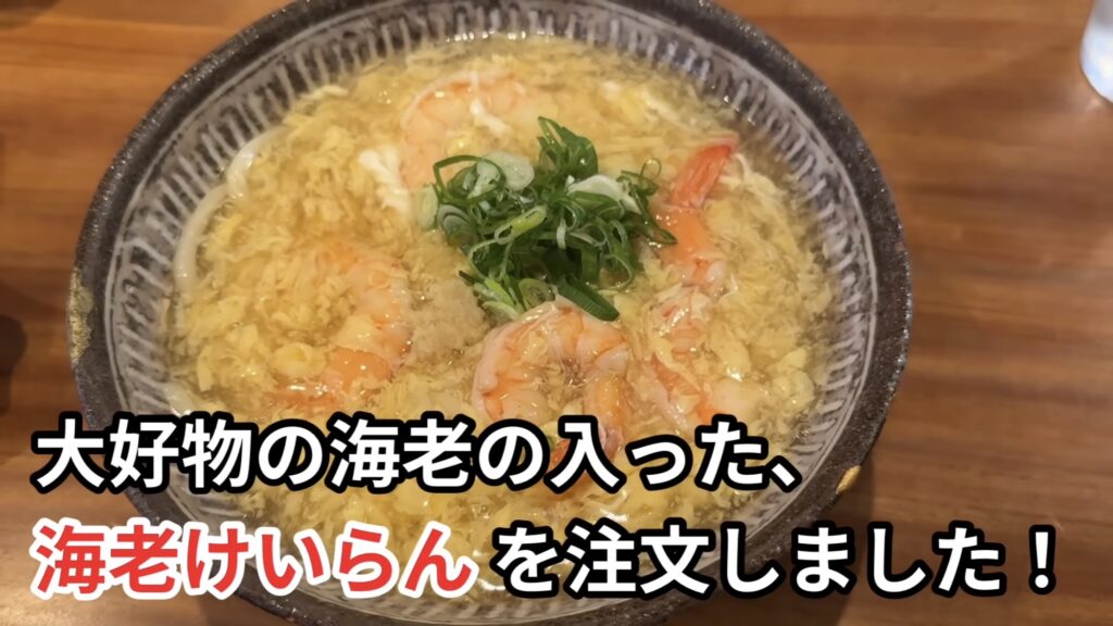 【白扇】ふわとろ卵と生姜香る絶品出汁!体が温まるエビけいらんうどん【八尾】