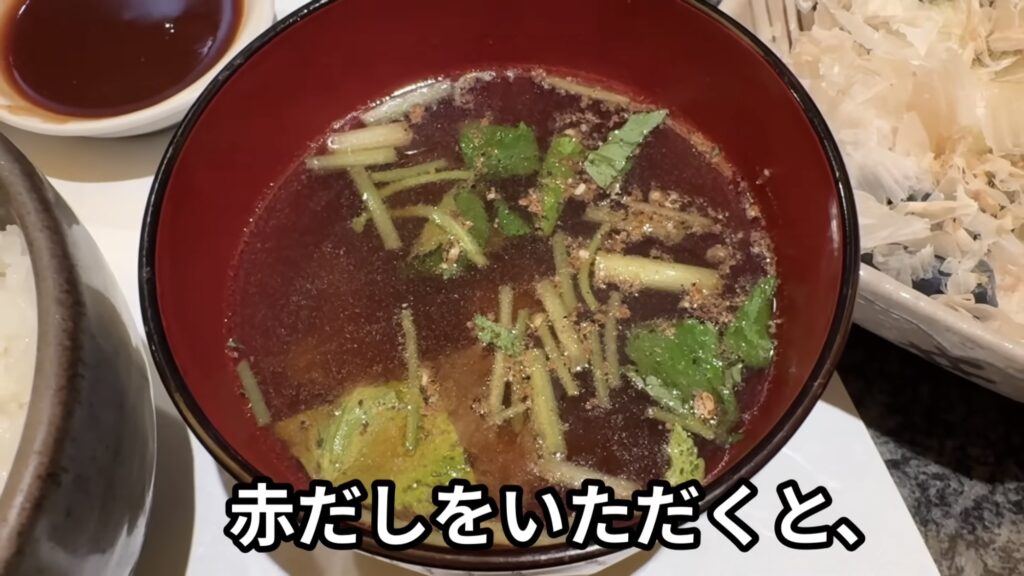 赤だしは、ほんのり山椒が香るさっぱりとした味わい。