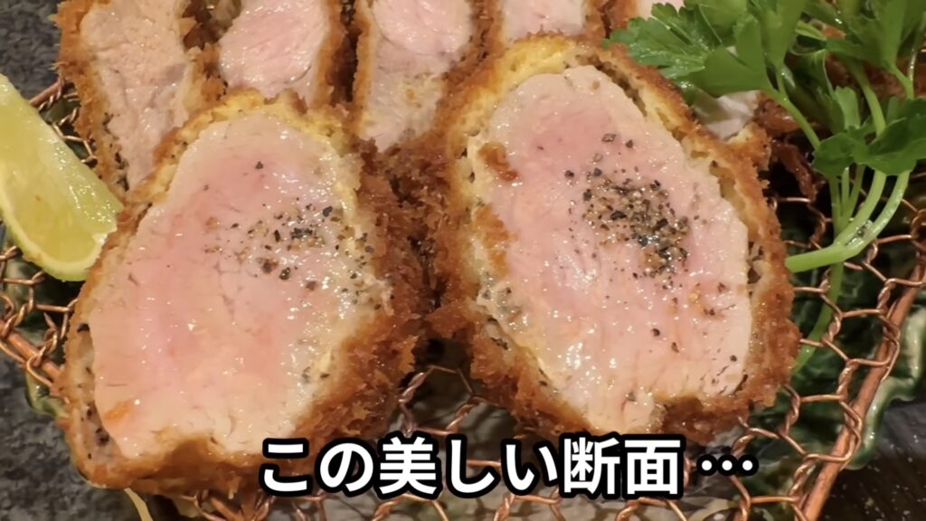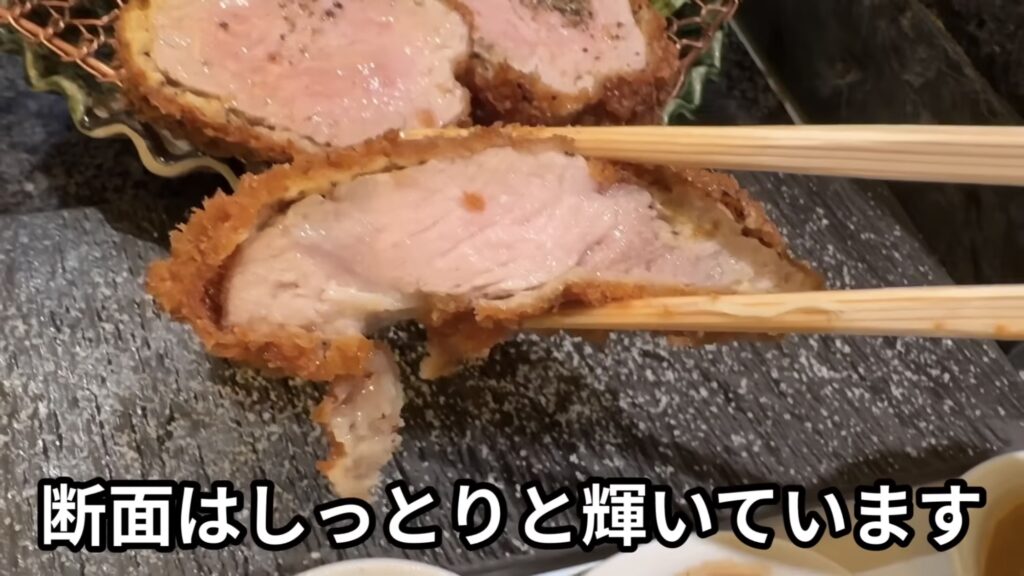 衣は黄金色に輝き、中のお肉はほんのりピンク色。