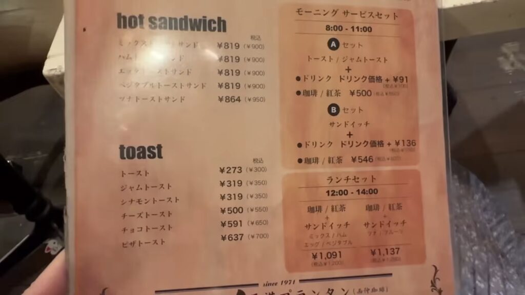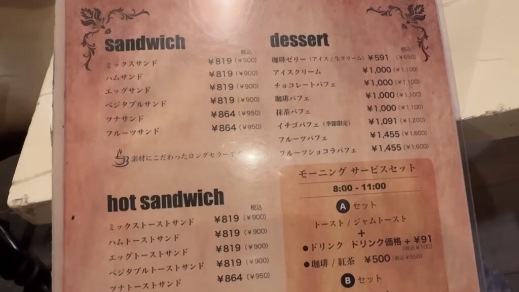 純喫茶らしいラインナップで、どこか懐かしさを感じる内容。